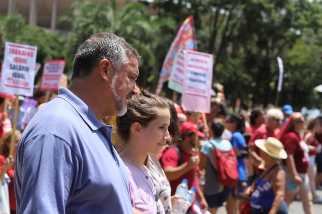 Presidente do Sindicato, Kleytton Morais participou da atividade convocada pelas mulheres e destacou que “o Dia Internacional das Mulheres teve um brilho a mais neste raiar de 2020. A manifestação, massiva em várias partes do planeta, demonstra o longo caminho a percorrer para a superação das injustiças e mazelas de todas as ordens contra as mulheres”.