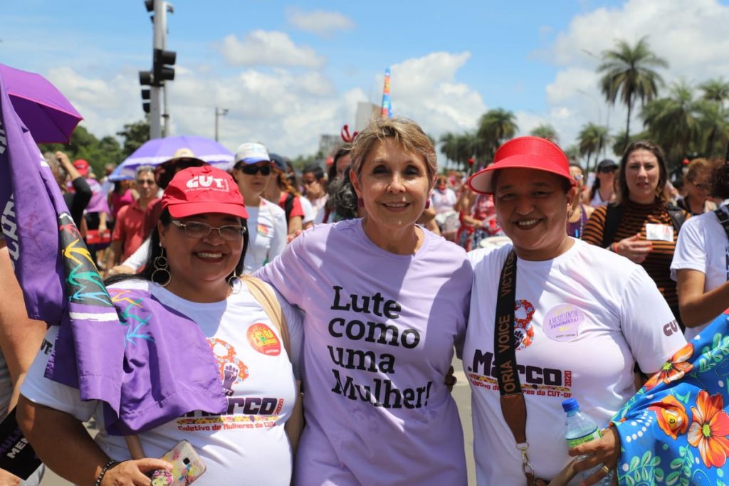 Ameaçada diariamente pelo desgoverno do capitão reformado, a defesa da democracia é parte da pauta de luta das mulheres neste 8 de março. Além disso, os gritos que ecoaram na capital cobravam o fim do feminicídio e de todo tipo de agressão, a legalização do aborto, salários iguais aos dos homens, participação efetiva nos espaços de poder. Elas também marcharam por pautas amplas, como a defesa dos serviços públicos, contra as privatizações, contra a precarização das relações de trabalho e todo o desmonte de Estado conduzido por uma política avessa aos interesses do povo.