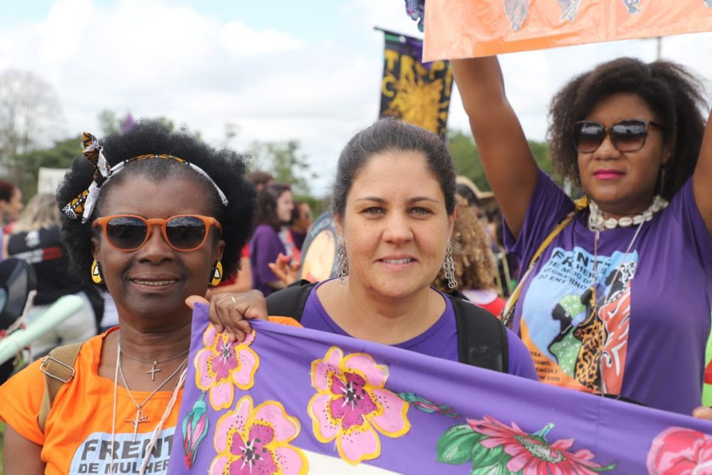A marcha reforçou que a luta é em defesa da vida de todas as mulheres, cisgêneras ou transgêneras, trabalhadoras do campo e da cidade, crianças, jovens, adultas e idosas, negras, brancas e indígenas.