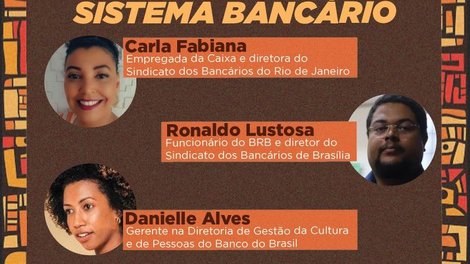 Participarão do encontro virtual o secretário de Assuntos Parlamentares da entidade e bancário do BRB, Ronaldo Lustosa, a gerente na Diretoria de Gestão da Cultura e de Pessoas do Banco do Brasil, Danielle Alves, e a empregada da Caixa e diretora do Sindicato dos Bancários do Rio de Janeiro, Carla Fabiana. Edson Ivo, bancário do BRB e secretário de Combate à Discriminação do Sindicato, será o mediador desse bate-papo.