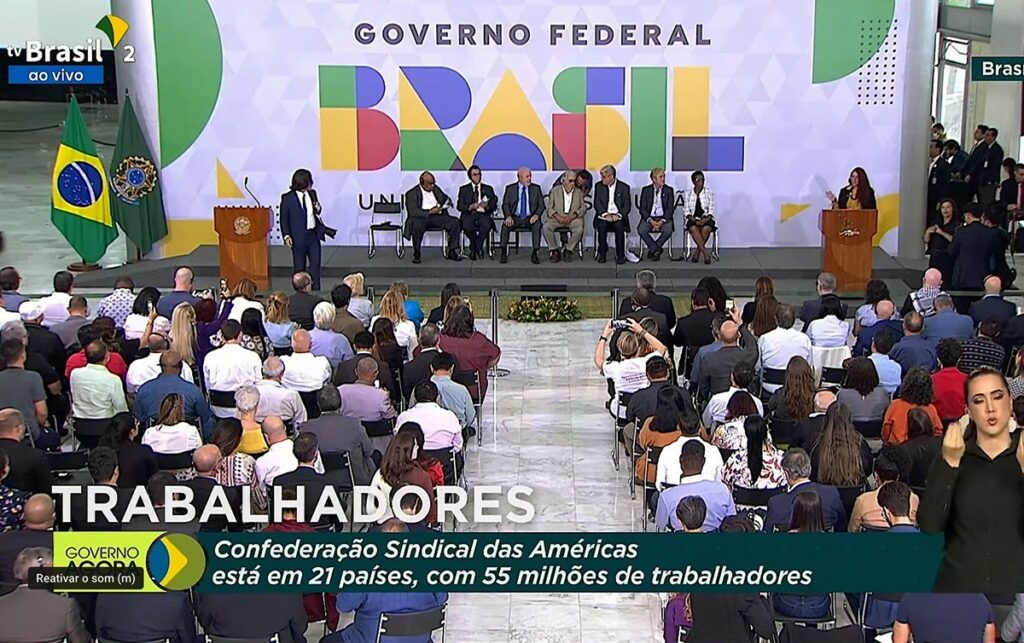 No início da cerimônia, Fred Redmond, dirigente da AFL-CIO (central sindical dos Estados Unidos), destacou a visita do presidente brasileiro àquele país no mês passado. Segundo ele, isso demonstra prioridades do governo. Redmond também se disse otimista com o trabalho conjunto entre Lula e Joe Biden, a quem chamou de “amigo” do movimento sindical.