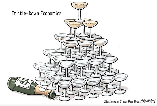 "A tese da 'recaída favorável' – afirma o estudioso – é conhecida na literatura econômica como tese 'do 'efeito de gotejamento', eficazmente emprestada do aforisma – usado pela primeira vez, ao que parece, pelo economista norte-americano Alan Blinder – segundo o qual 'uma maré que cresce levanta todos os barcos'. Durante muito tempo, o pensamento neoliberal acredito nela: portanto, não seria preciso se preocupar com a distribuição da renda e das riquezas, porque, depois, todos acabarão ficando melhor. O importante é aumentar as dimensões da torta (o PIB), sem se preocupar com o corte das fatias individuais. Está aí o fundamento do bem conhecido ditado dos conservadores: 'Não nos preocupemos com os pobres, porque, para cada rico a mais, há um pobre a menos'".