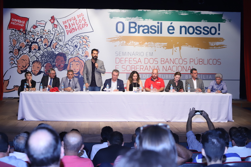 A importância dos bancos públicos para assegurar a soberania nacional e um país mais justo e igualitário pautou o debate do seminário “O Brasil é nosso – Em defesa dos bancos públicos e da soberania nacional”, realizado nesta terça-feira (29), no Sindicato dos Bancários de Brasília.