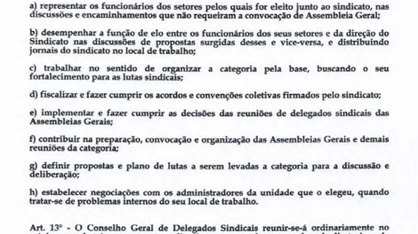 De acordo com o Estatuto do Sindicato, são as seguintes as atribuições dos delegados sindicais: