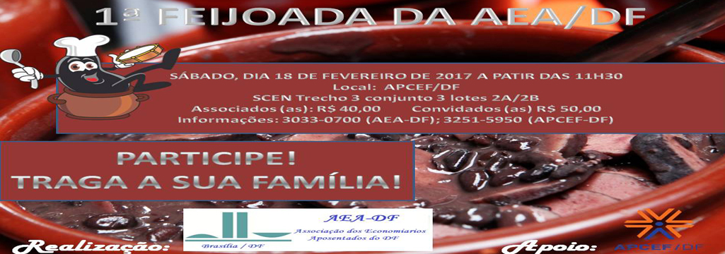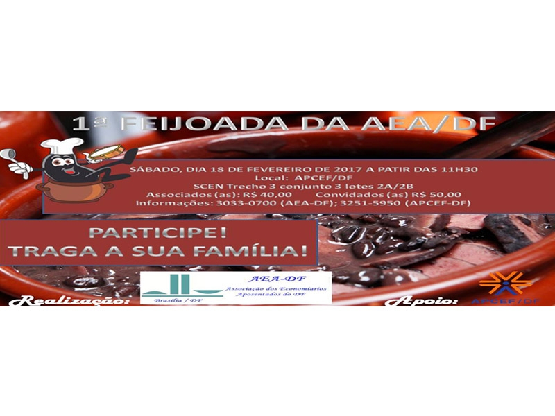 A 1ª Feijoada da Associação dos Economiários Aposentados do DF (AEA-DF) será realizada no sábado (18), na APCEF.
