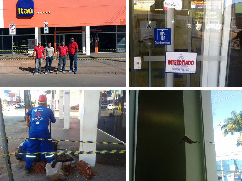 A Defesa Civil do Distrito Federal interditou preventivamente a agência do Itaú de Planaltina do DF, nesta terça-feira (21), por causa de vários problemas na estrutura da unidade do banco. O transtorno é antigo e no local já foram feitos remendos, que agora provocaram rachaduras nas paredes, com risco de desabamento.
