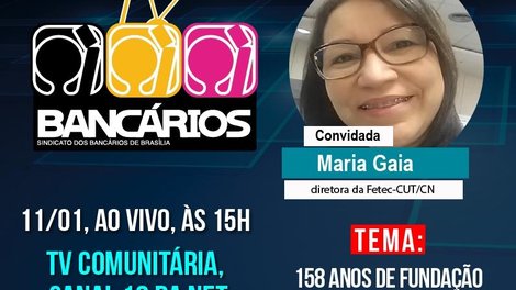 Para falar sobre a data e estas questões que envolvem a Caixa, o TV Bancários na TV Comunitária recebe a diretora Fetec-CUT/CN Maria Gaia, que é empregada da instituição financeira.