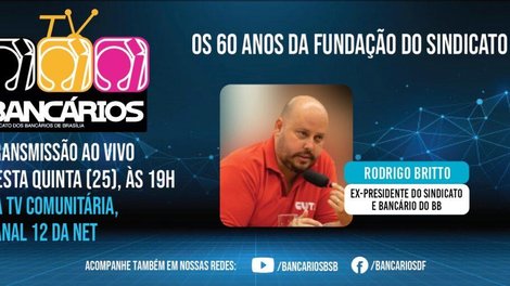 O TV Bancários desta quinta-feira (25) aborda os 60 anos de existência do Sindicato dos Bancário de Brasília. O convidado do programa é Rodrigo Britto, ex-presidente da entidade, e atual dirigente da Fetec-CUT Centro Norte e da CUT Brasília.