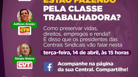 Assista ao vivo pela página do Sindicato no Facebook: https://www.facebook.com/cutbrasil/videos/220061805937088/