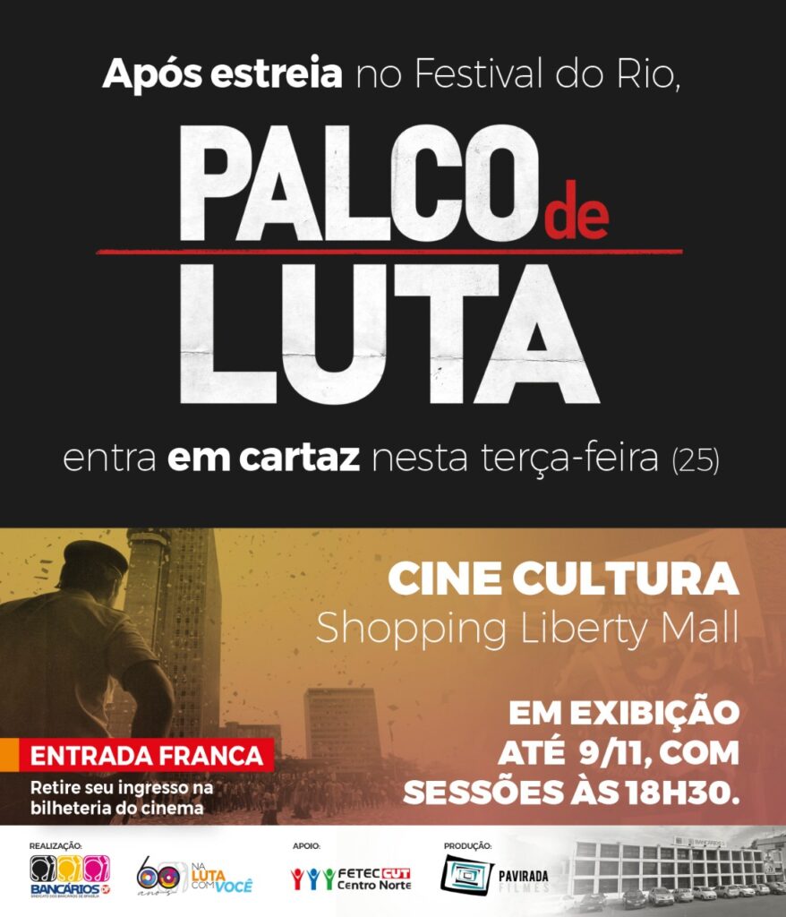 Após estreia no Festival do Rio na primeira quinzena do mês, o documentário Palco de Luta chega às telonas do cinema. A partir desta terça (25), sempre às 18h30, o longa estará em exibição no Cine Cultura, no shopping Liberty Mall, contando a história de lutas de uma das mais importantes entidades representativas de trabalhadores do país. A entrada é franca - o ingresso pode ser retirado na bilheteria do cinema.
