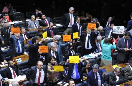 "Essa votação é antirregimental. É um jogo extra, à lá José Maria Marin. Vai se constituir os partidos S.A., o partido da Friboi, da Odebrecht e dos bancos". Ao seu lado, o também deputado federal Ivan Valente (PSOL-SP) gritou: "É uma marmelada."