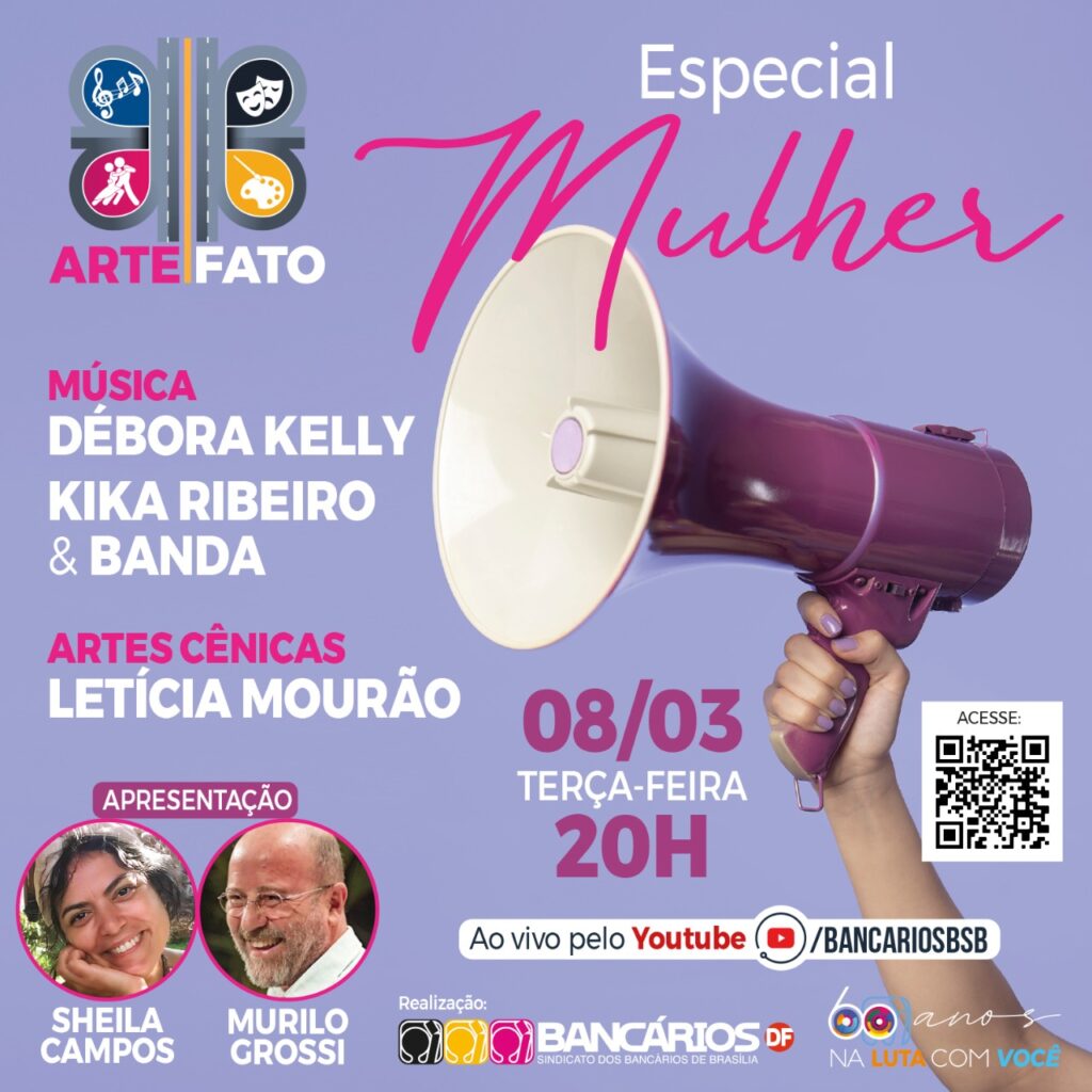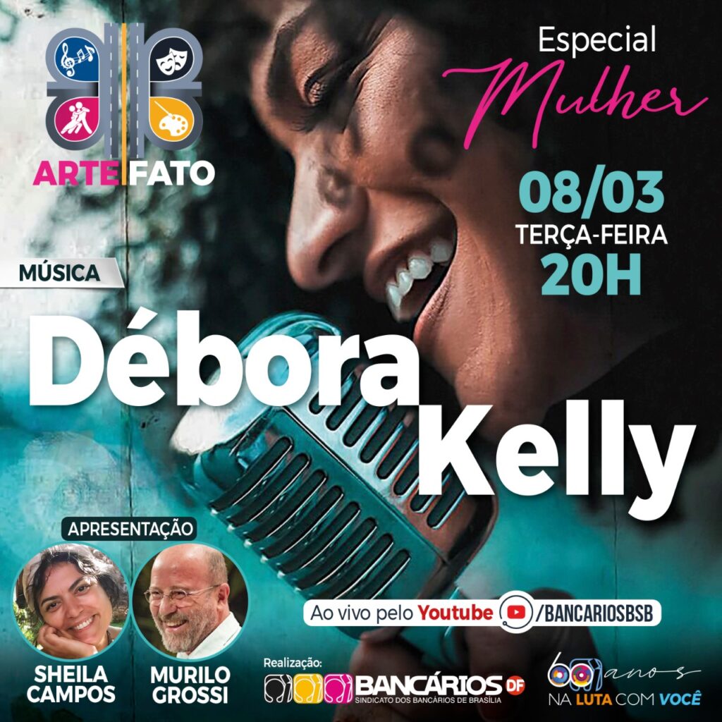 O Arte|Fato trará também artistas da música e das artes cênicas, como a cantora, compositora e poeta Débora Kelly, que iniciou sua carreira profissional em 2013 na Banda SoundFÉ. Com seu projeto autoral, lançado em 2020, a bancária da Caixa Econômica já se apresentou no DF, Goiás, São Paulo e Maranhão, em bares, teatros e até hospitais.