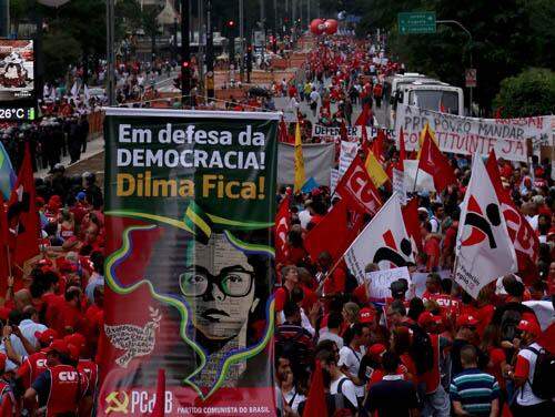 Essa gente tem clareza de causas. Sabe o porquê de estar na rua. Gritamos a necessidade da reforma política, item fundamental no debate sobre financiamento privado de campanhas eleitorais e combate à corrupção. Falamos aos quatro ventos que defenderemos a Caixa 100% pública. Explicitamos que não deixaremos que a Petrobrás seja desqualificada com o objetivo claro de ter seu capital exposto às garras vampirescas, especialmente dos Estados Unidos. Mandamos o recado à presidenta Dilma e aos membros da equipe econômica chefiada pelo ministro Joaquim Levy que defendemos a democracia com unhas e dentes, mas o nosso compromisso é com trabalhadoras e trabalhadores do Brasil que, semeadores das riquezas devem colher seus frutos.