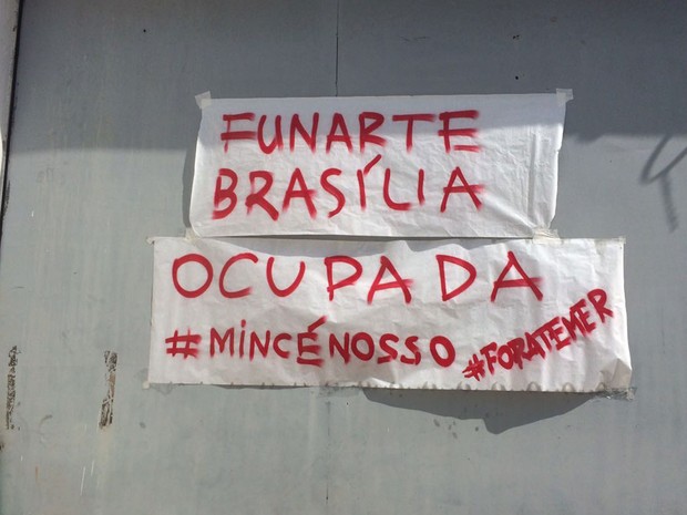 Autodenominado Ocupa MinC DF, o grupo de Brasília – formado em sua maioria por estudantes de artes cênicas da Universidade de Brasília (UnB) e de dança do Instituto Federal de Brasília (IFB) -- montou barreira, com cones e um pequeno tonel, na entrada do estacionamento e afixou cartazes com os dizeres “fora Temer”, “MinC é nosso” e “Funarte ocupada” em um dos portões do espaço cultural. E gritavam palavras de ordem como “fora, Temer! E “ocupa e resiste”.