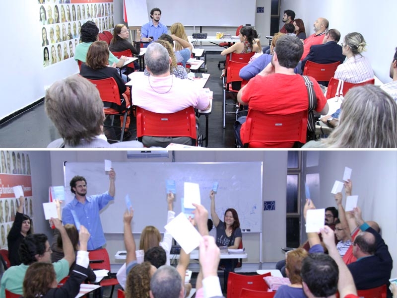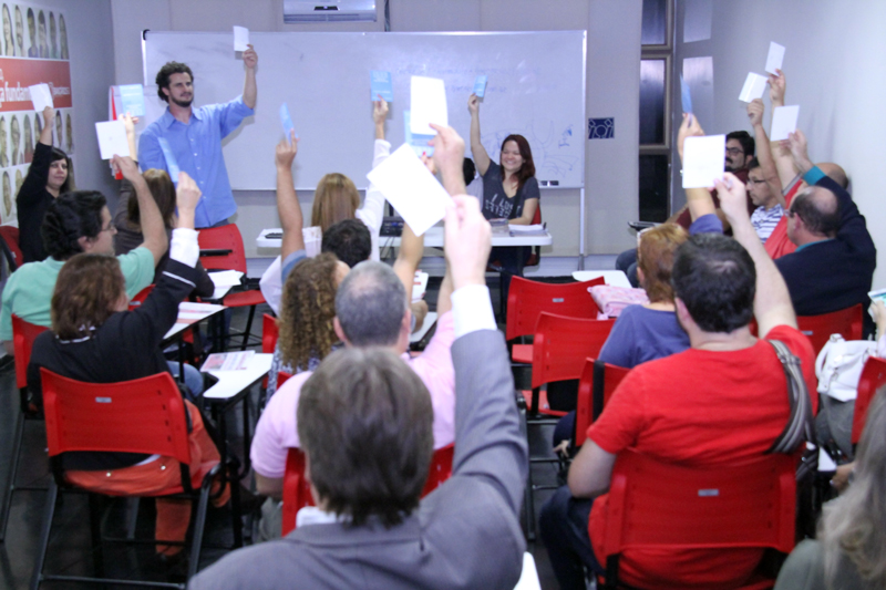Após um debate, entre bancários e representantes do Sindicato, foi feito o cadastro dos empregados da Caixa interessados em participar do congresso. As propostas colhidas serão remetidas para debate no Conecef.