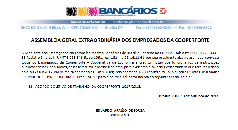Confira o Edital da Assembleia geral extraordinária dos empregados da Cooperforte.