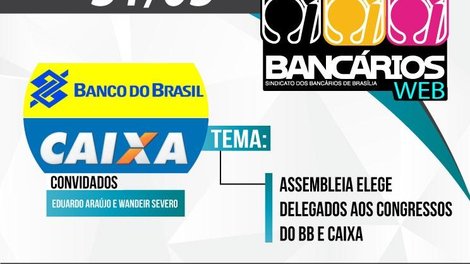 A assembleia que elegeu a delegação do Distrito Federal para participar do 28º Congresso Nacional dos Funcionários do BB (CNFBB) e do 33º Congresso Nacional dos Empregados da Caixa Econômica Federal (Conecef) será tema do TV Bancários Web desta quarta (31).