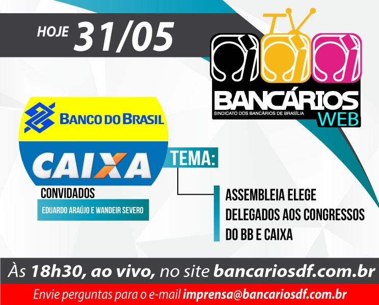 Participe! Envie suas duvidas para o e-mail tvbancarios@bancariosdf.com.br. O programa será transmitido ao vivo pelo portal do Sindicato e pelas redes sociais da entidade.