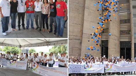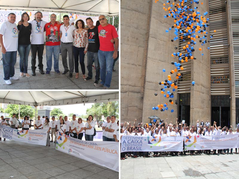 Os empregados e empregadas da Caixa demonstraram força e unidade na luta em defesa da Caixa 100% pública. A atividade desta terça-feira (28) reuniu o corpo funcional da Caixa para reforçar a importância da empresa para o crescimento social e econômico do país, garantindo cidadania, educação e moradia a milhões de brasileiros.