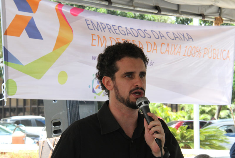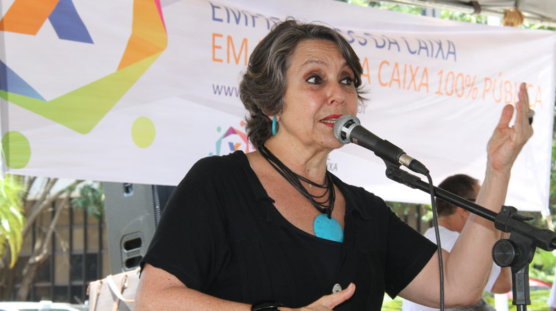 A deputada federal Erika Kokay (PT-DF) também participou da atividade. Durante sua fala, Erika lembrou o histórico de luta dos trabalhadores da Caixa e defendeu a manutenção da empresa 100% pública. “A Caixa tem muita história para estar no balcão de negócios deste governo que está aí sem um voto sequer do povo brasileiro. Querem introduzir na empresa o viés do mercado, desconsiderando totalmente que é a Caixa a maior articuladora das políticas públicas do país”, alertou Erika, que também é empregada da Caixa.