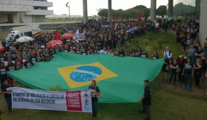 Para participarem do ato na Câmara Legislativa, os professores compactaram a carga horária nos dois períodos diurnos, sem prejuízos para os alunos. A manifestação também visou repudiar projetos como o PL da Mordaça, promovido pela deputada distrital Sandra Faraj (Solidariedade), contrário ao pluralismo de ideias no ambiente acadêmico, bem como a Circular nº 11/2015, do GDF que institui a censura nos espaços escolares.