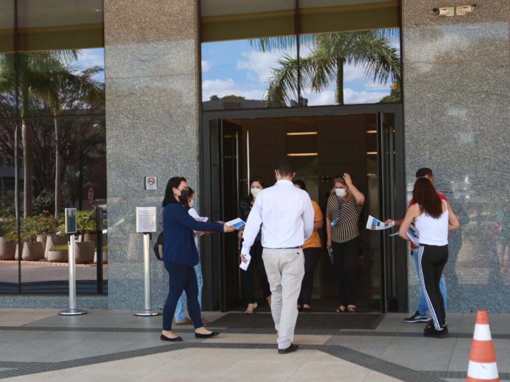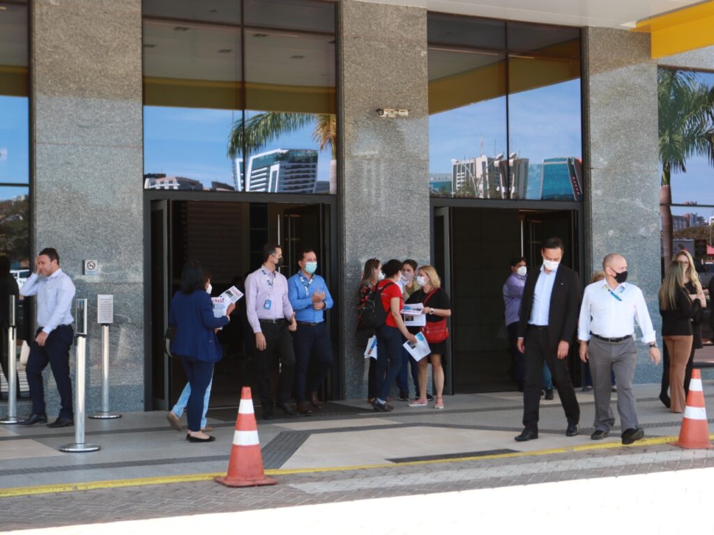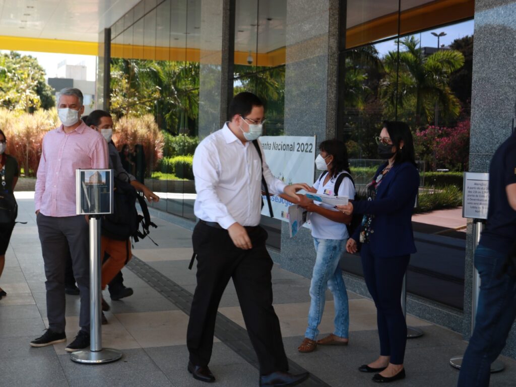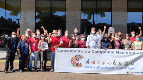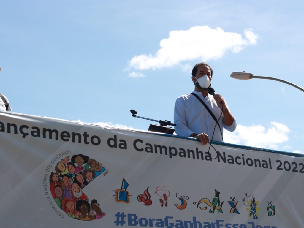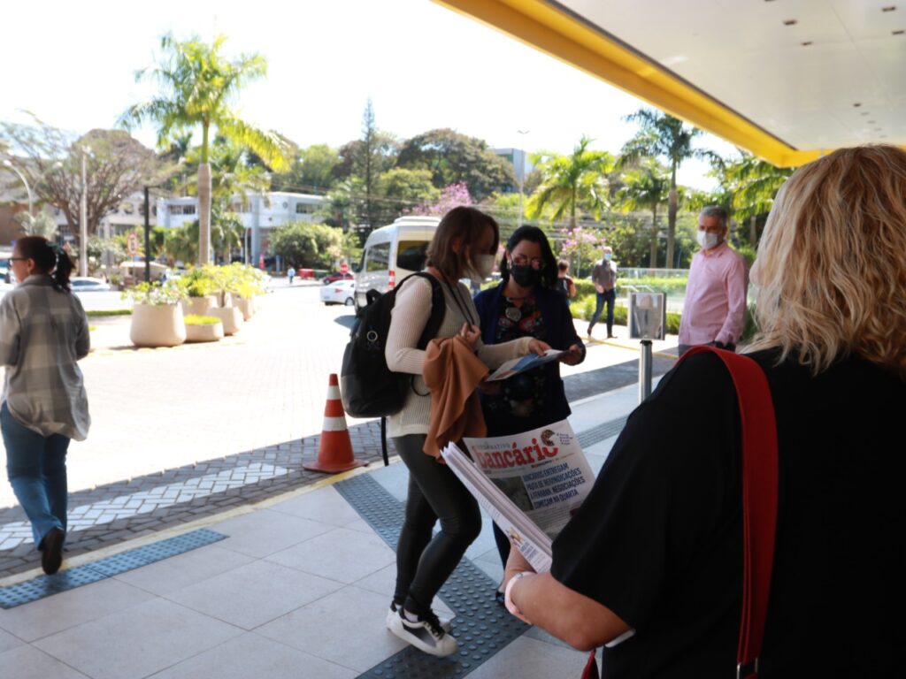 O Sindicato promoveu nesta quinta-feira (23), no Edifício Banco do Brasil da 201 Norte, ato de lançamento da Campanha Nacional dos Bancários 2022 no Distrito Federal e Entorno, para convocação da categoria à mobilização e à participação no processo de renovação da Convenção Coletiva de Trabalho (CCT) e dos acordos coletivos específicos por bancos.