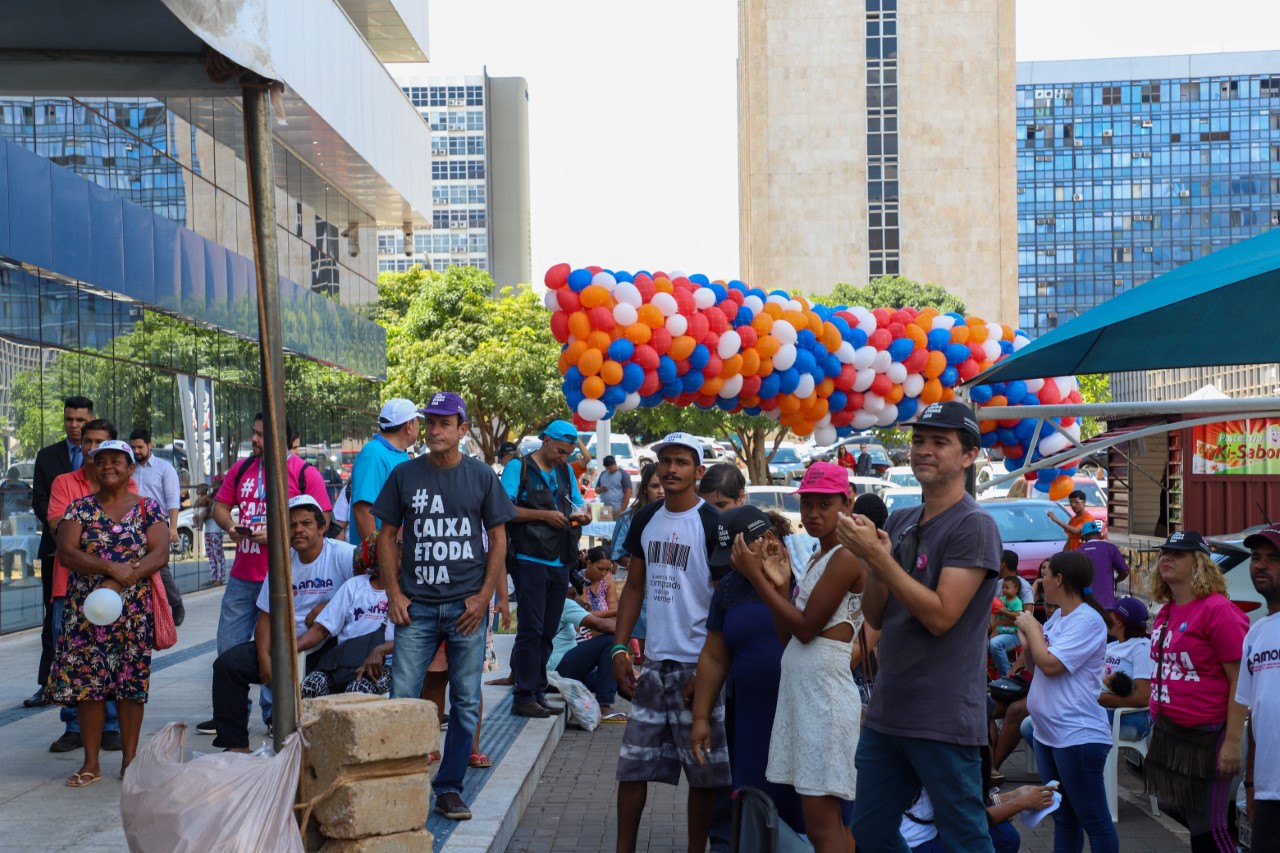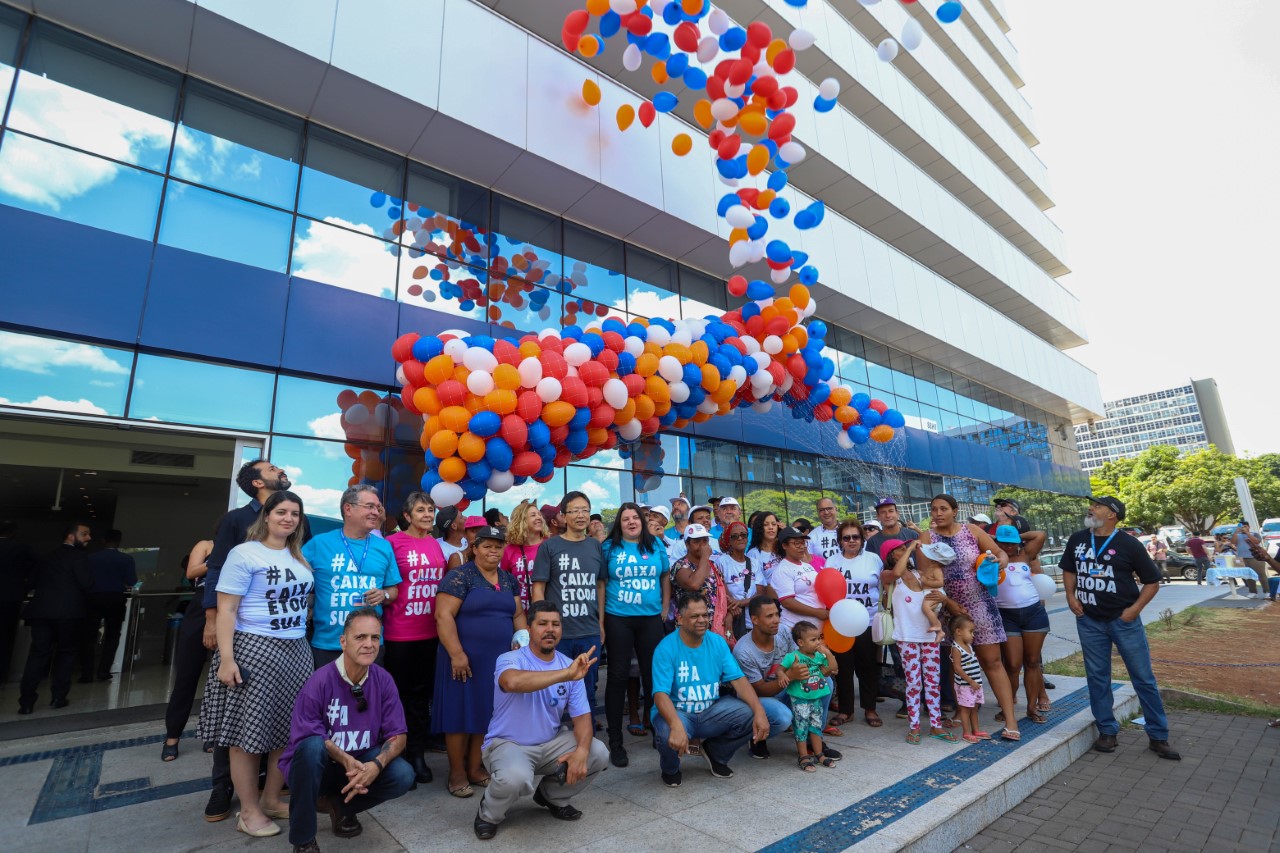 Entidades representativas dos empregados da Caixa promoveram no final da manhã desta terça-feira (15), em frente ao Edifício Matriz 3, em Brasília, ato de pré-lançamento da campanha #ACaixaétodasua, que será deflagrada no próximo domingo (20), contra a privatização da empresa.