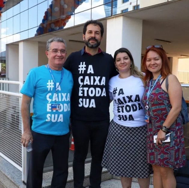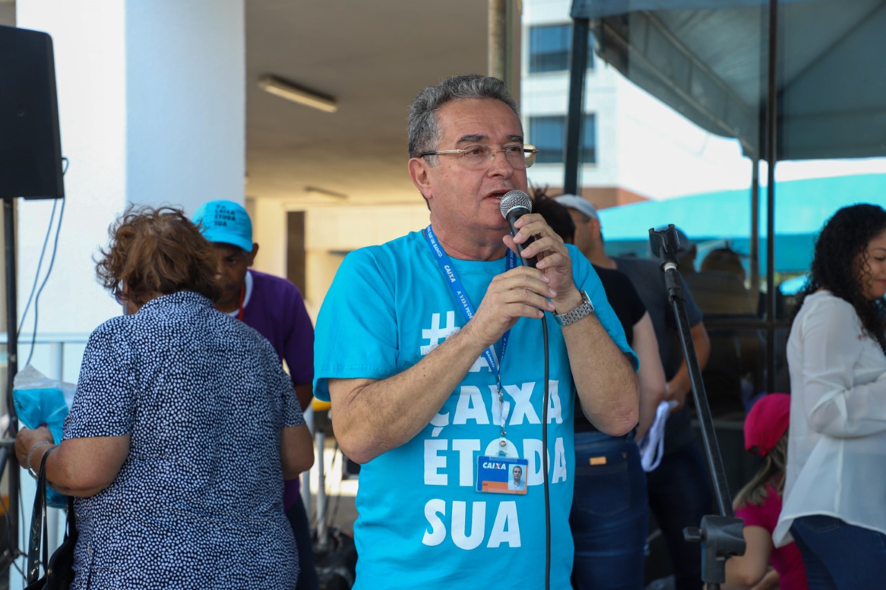 Jair Pedro Ferreira, presidente da Fenae, conclamou os empregados e empregadas da Caixa ao engajamento na campanha #ACaixaétodasua, em respaldo às ações das suas entidades representativas, a exemplo do que sempre fizeram em momentos de ameaça ao futuro da empresa como instituição 100% pública. “Foi com luta de resistência que impedimos o avanço do processo de privatização da Caixa nos anos 1990 e, mais recentemente, a abertura de capital pretendida pelo governo Temer”, frisou o dirigente da Federação.