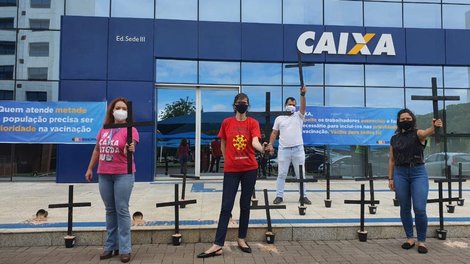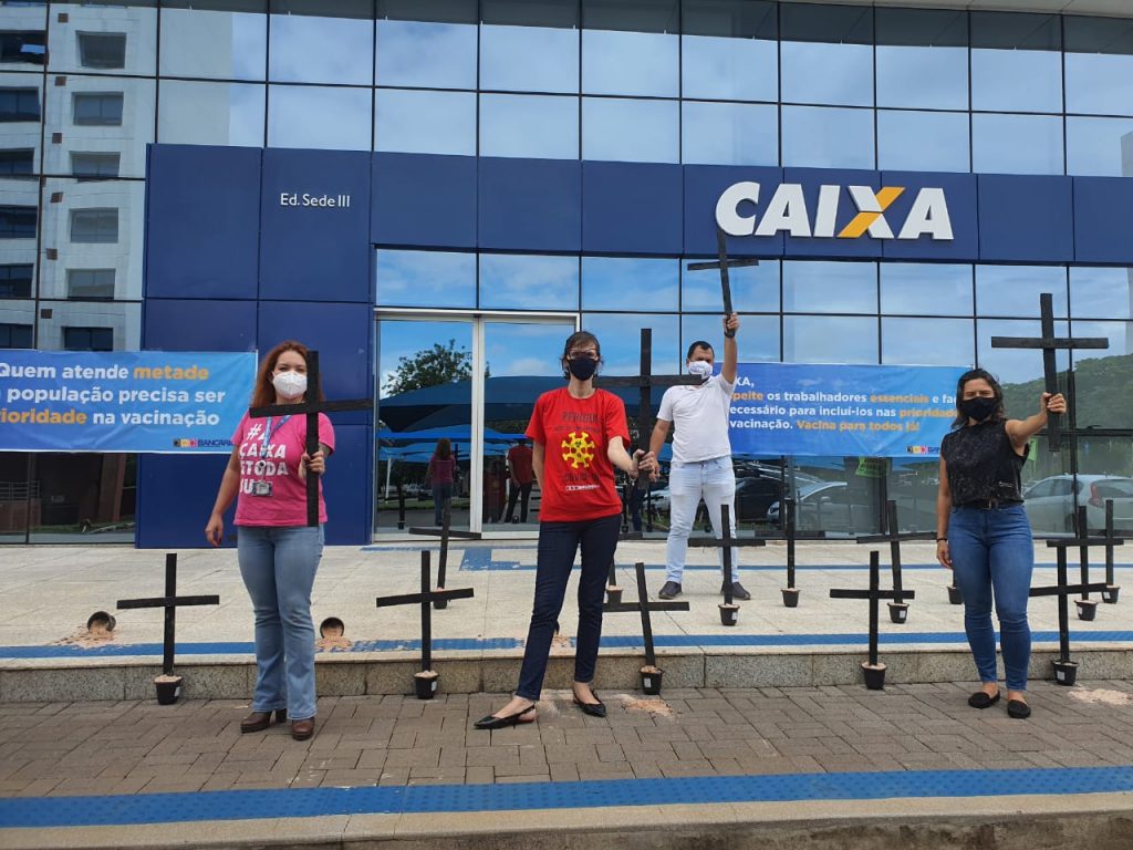 A atividade faz parte do cronograma de mobilização dos empregados da Caixa lotados em Brasília no mês em que o banco público volta a pagar o auxílio emergencial a milhões de brasileiros.