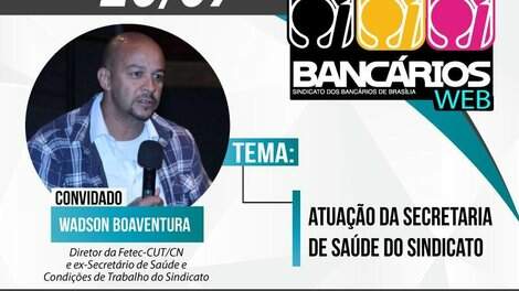 A atuação da Secretaria de Saúde do Sindicato é tema do TV Bancários Web desta quinta (20). Como convidado esta edição recebe o diretor da Fetec-CUT/CN e ex-Secretário de Saúde e Condições de Trabalho do Sindicato Wadson Boaventura.