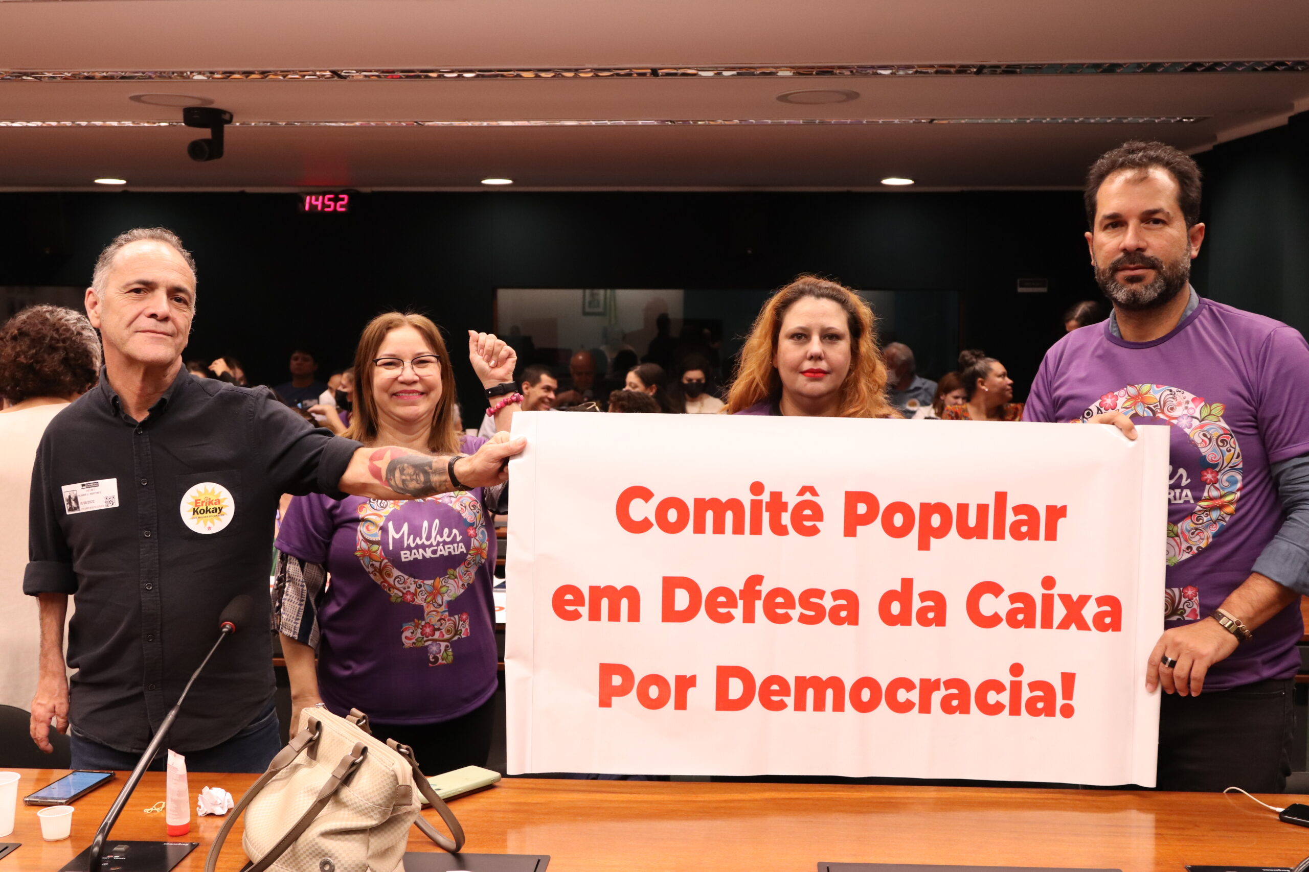 Participaram dos debates dirigentes de entidades representativas dos empregados da Caixa (Sindicato dos Bancários de Brasília, Fenae e Contraf-CUT), a representante eleita para o Conselho de Administração da Caixa, Rita Serrano, e a ex-presidenta da Caixa Maria Fernanda Ramos Coelho, entre outros convidados e convidadas. O Sindicato foi representado por seu presidente, Kleitton Morais. O presidente do Conselho de Administração da Caixa, Rogério Bimbi, não atendeu ao convite da Comissão da Câmara.