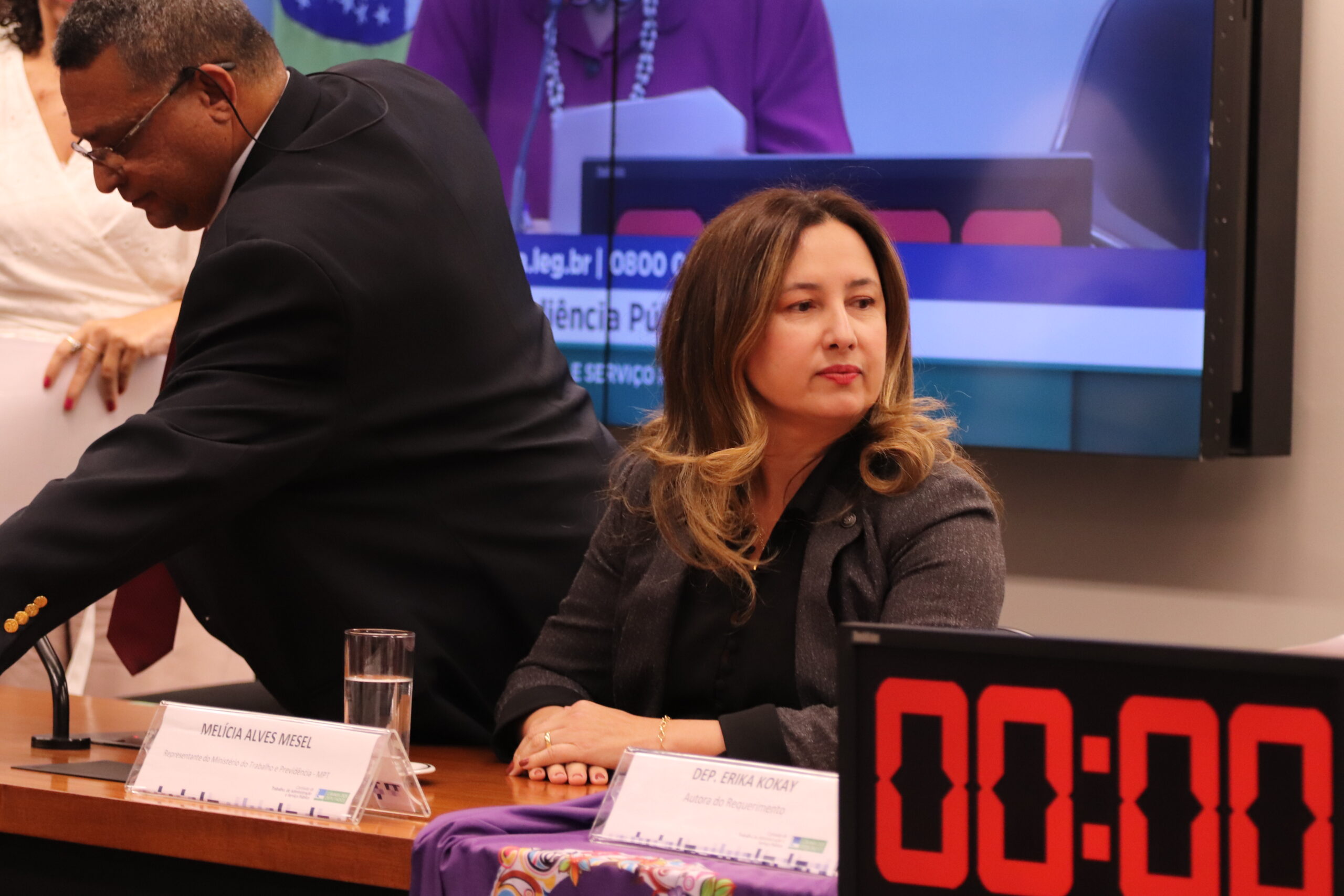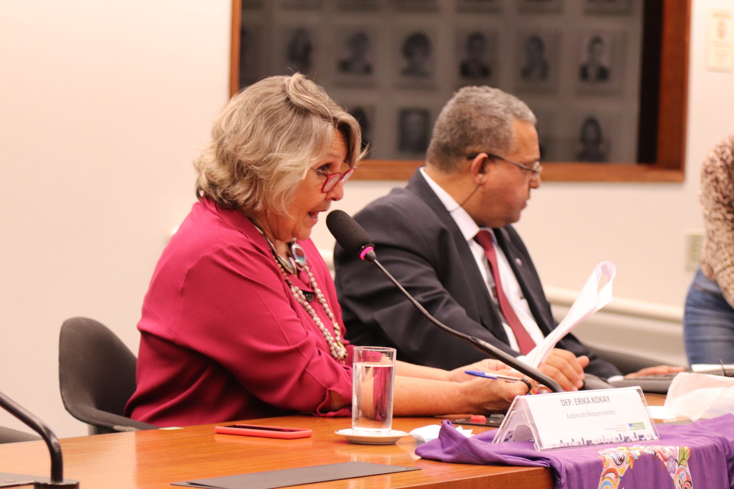 A deputada Erika Kokay abriu a audiência salientando o objetivo de debater o tema assédio sexual e moral no trabalho e de apontar formas de apuração e punição dos denunciados pelos crimes praticados, em especial os envolvidos nos casos de assédio sexual na Caixa.