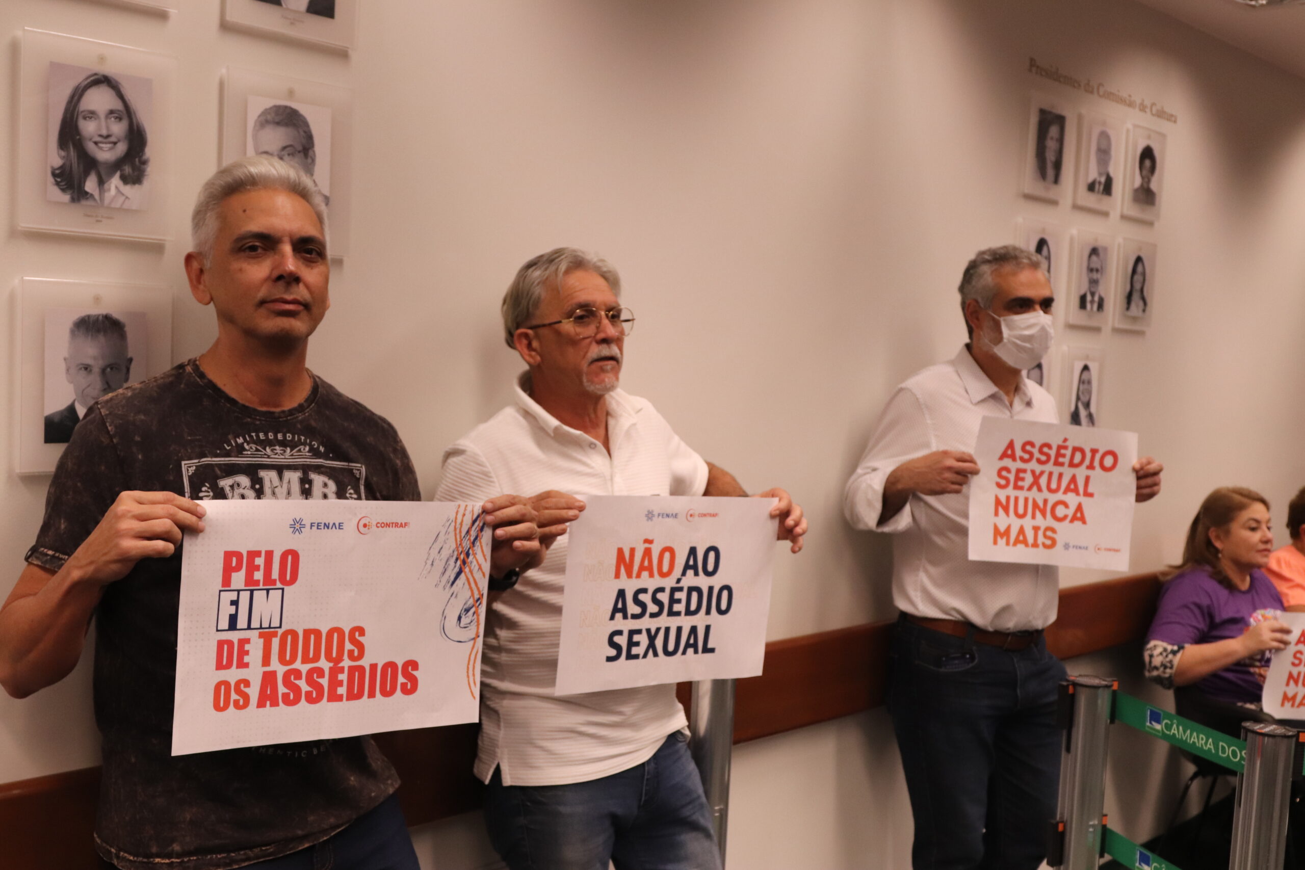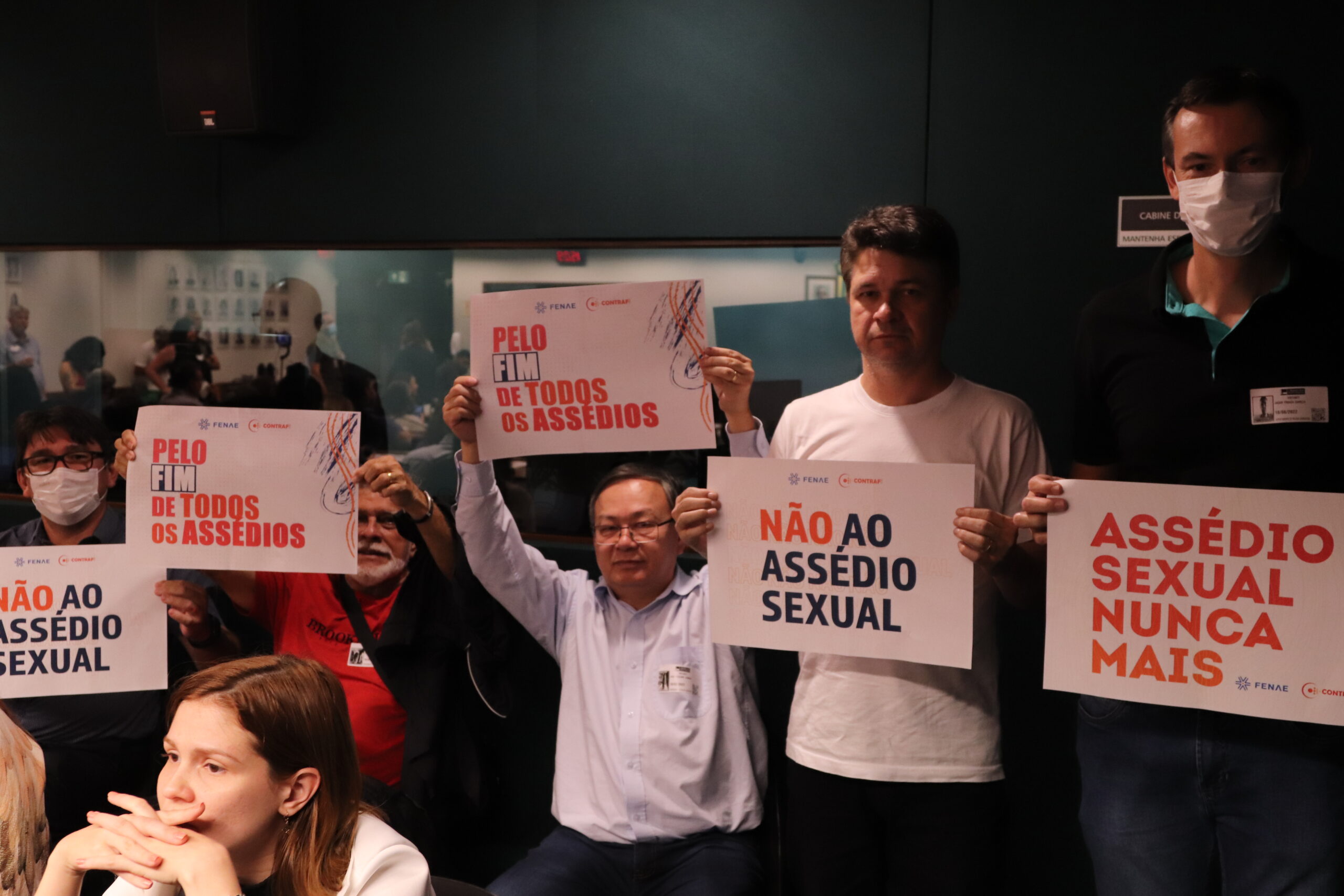 Fernanda Lopes, da Contraf-CUT, salientou que as denúncias de assédio moral e sexual nos bancos atinge nesse momento dimensão que até então não tinha existido, lembrando que o processo de negociação da Campanha Nacional dos Bancários está em curso e que os representantes da categoria cobram de forma incisiva a instituição de medidas efetivas de combate ao assédio moral e sexual, com acolhimento e proteção às vítimas.