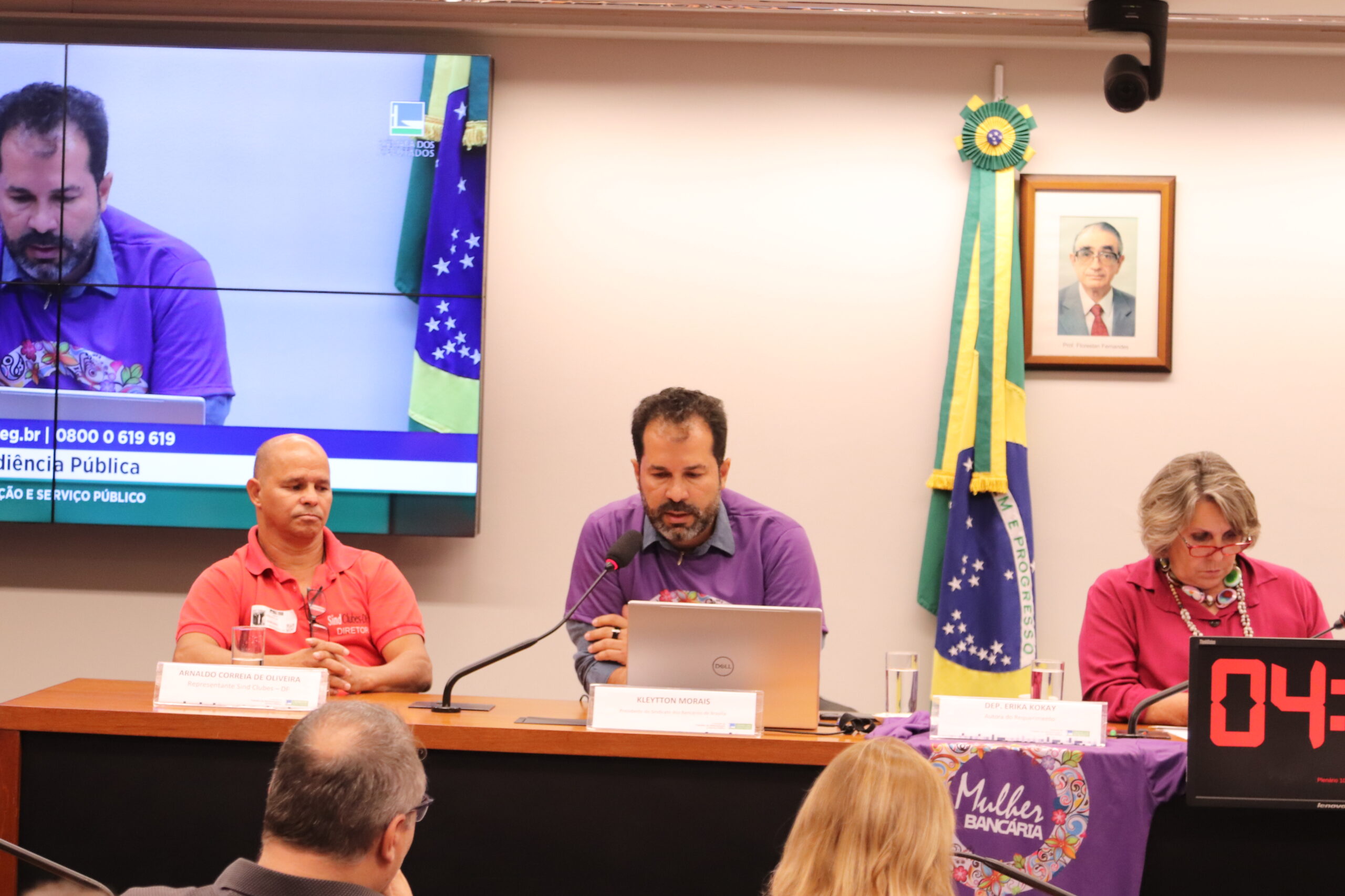 Kleytton lembrou as iniciativas tomadas pelo Sindicato buscando demover esse tipo de prática, como a aproximação com a Clínica do Trabalho do Departamento de Psicologia da Universidade de Brasília, que se dedica há mais de uma década ao estudo dos malefícios do modelo de organização do sistema financeiro sobre a saúde das bancárias e dos bancários.
