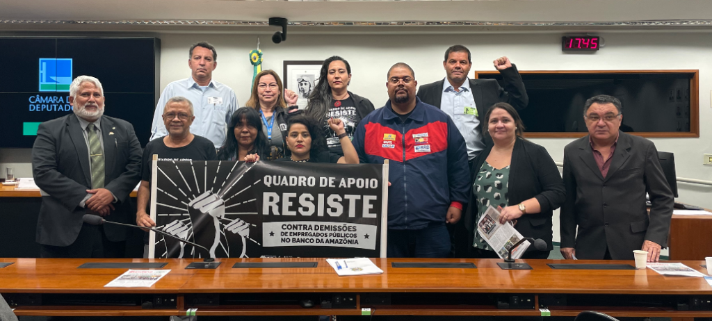 A luta de resistência dos funcionários do Quadro de Apoio do Banco da Amazônia (Basa) contra as demissões anunciadas pelo banco ganhou reforço e amplitude a partir da audiência pública realizada na tarde desta quarta-feira (25) na Câmara Federal, em Brasília, com a participação de representantes de entidades sindicais e associativas da categoria bancária, incluindo o Sindicato dos Bancários de Brasília, e de parlamentares aliados à defesa dos trabalhadores.