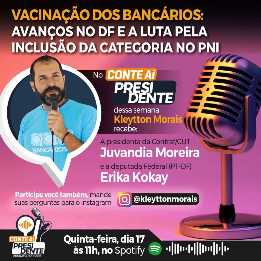 Está disponível no Spotify o episódio desta quinta 17 do podcast “Conta aí, presidente”, que trata da vacinação dos bancários e bancárias.