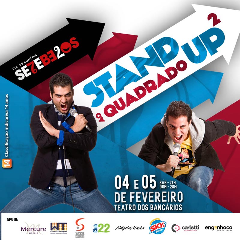O Sindicato irá sortear nesta quinta-feira (2) cinco pares de ingressos para o espetáculo “Stand Up ao Quadrado”, com a Cia Setebelos. Os ingressos valem para a sessão que será realizada no Teatro dos Bancários, no dia 4 (sábado), às 21h.