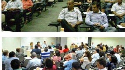 Reuniões da COE (acima) e com a diretora de RH do Santander (abaixo)
