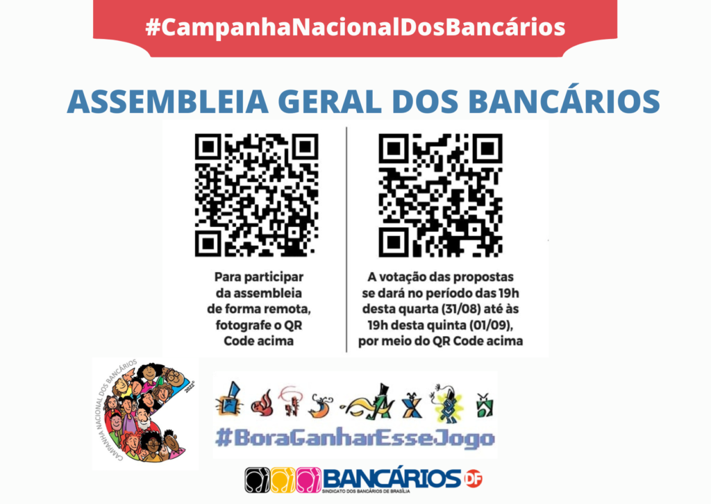 Diante do avanço nas negociações, considerando a transformação da assembleia geral iniciada em 26 passado em assembleia geral permanente, o Sindicato convoca as bancárias e os bancários para assembleia geral extraordinária nesta quarta (31), que será realizada na Praça do Cebolão, no Setor Bancário Sul, em formato híbrido (de forma presencial e remota), a partir das 19h em primeira convocação, ou às 19h30 em segunda e última convocação.
