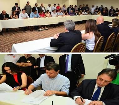 A Contraf-CUT, as federações e os sindicatos, incluindo o de Brasília, assinaram com a Fenaban na tarde desta segunda-feira 13, em São Paulo, a 23ª Convenção Coletiva de Trabalho (CCT), conquistada com a greve na Campanha Nacional 2014, que garante aumento real de salário pelo 11º ano consecutivo, além de avanços nas condições de trabalho, como os mecanismos de combate às metas abusivas e ao assédio moral. A solenidade foi realizada no hotel Macksoud Plaza, em São Paulo.