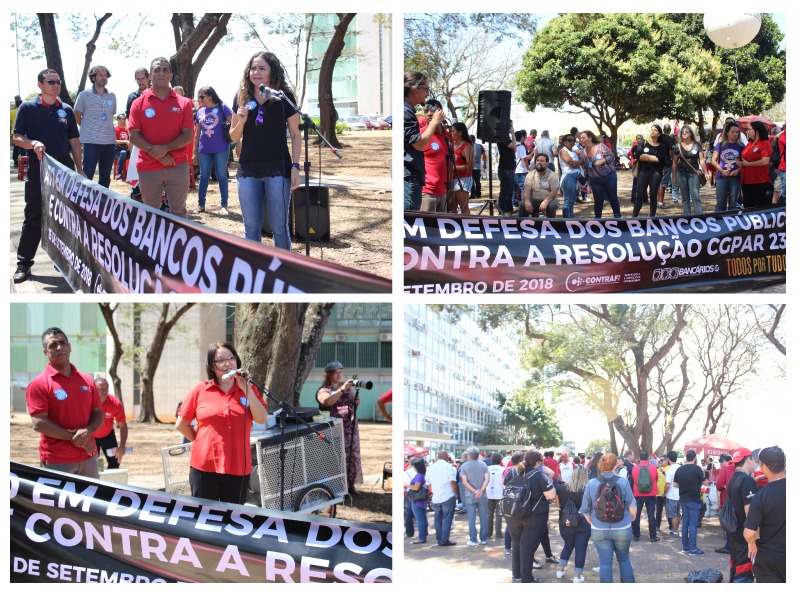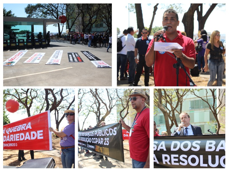 Além dos atos desta quarta-feira, os trabalhadores buscam a revogação das resoluções da CGPAR pela via legislativa com o Projeto de Decreto Legislativo (PDC 956/2018), de autoria da deputada federal Erika Kokay (PT-DF). Por meio de uma enquete da Câmara dos Deputados, os bancários podem concordar com o projeto da deputada, que visa sustar as resoluções da CGPAR. Participe!