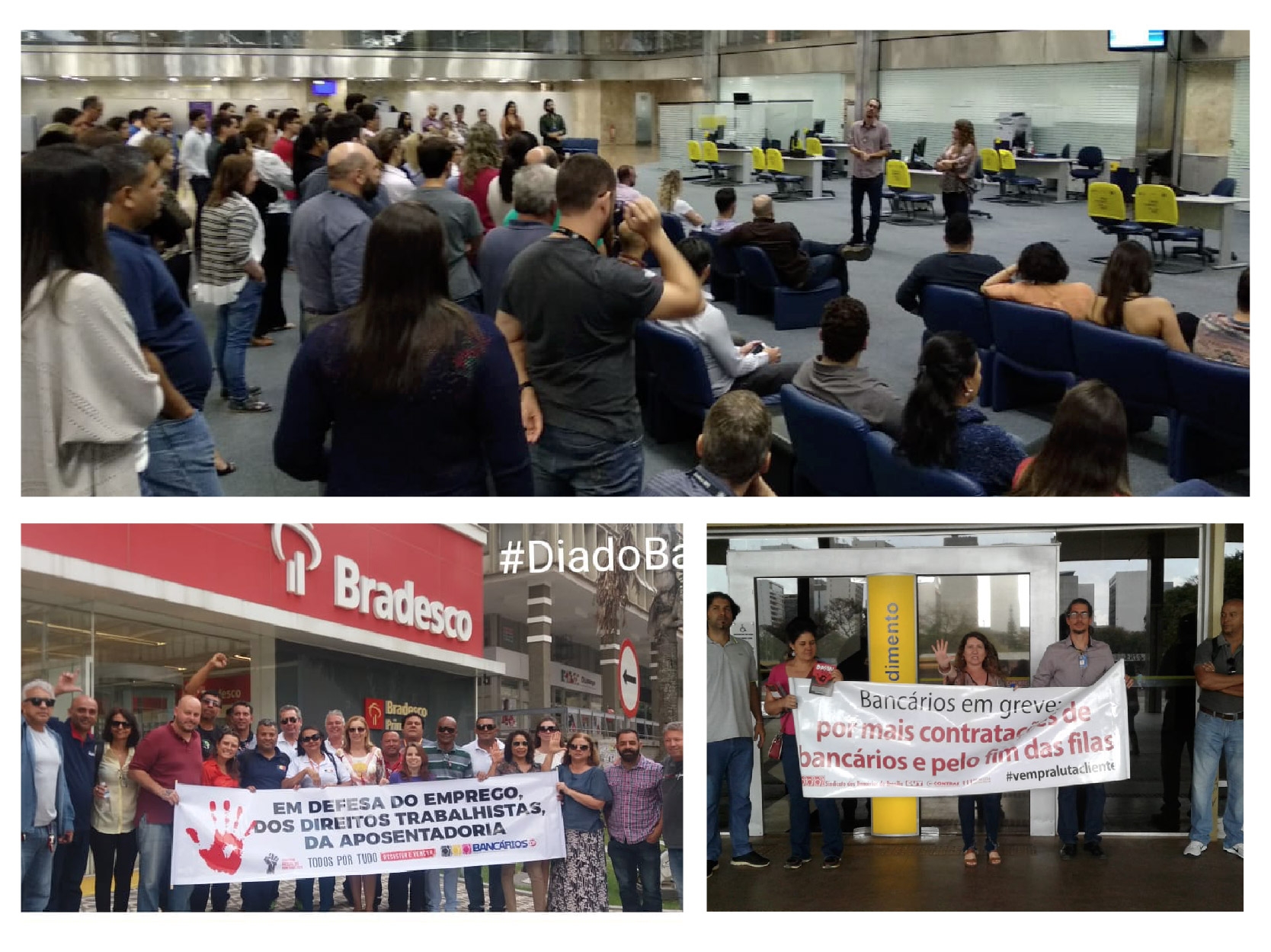 A diretora do Sindicato Martha Tramm conclamou: “Basta de juro alto, desemprego, serviço ruim, basta de não termos direito à água, a um salário justo, basta de corrupção, roubalheira, privatizações. Estamos aqui lutando pelo direito de um banco público que ofereça crédito de forma justa à população. E pedimos a colaboração, compreensão e participação de todos nesta luta”.