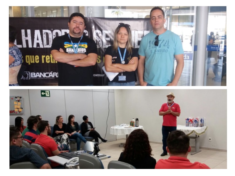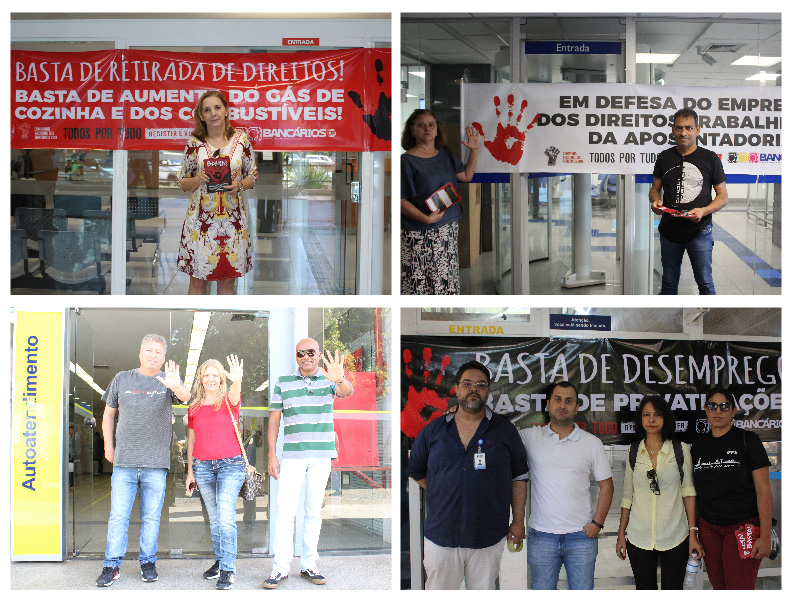 Os bancários e bancárias paralisaram as atividades das unidades por uma hora. Durante esse período, diretores do Sindicato entregaram panfletos e dialogaram com os trabalhadores e com os clientes e usuários sobre o retrocesso que atinge o país com o governo ilegítimo.