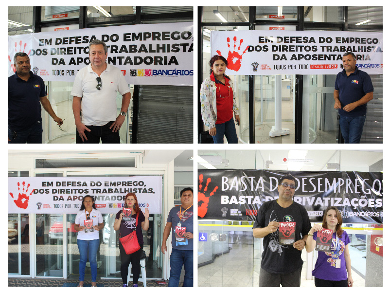 “O Dia do Basta é para pedir o apoio da população na nossa Campanha Nacional e contra esse governo golpista que está vendendo todas as nossas empresas estatais, tirando os nossos direitos trabalhistas, precarizando o nosso plano de saúde, a fim de forçar a venda da nossa empresa (Caixa) e ainda precarizando todo o SUS”, complementou Ilva José Alves (Duda) – diretora da Fetec-CUT/CN.