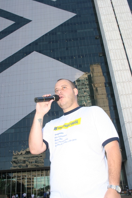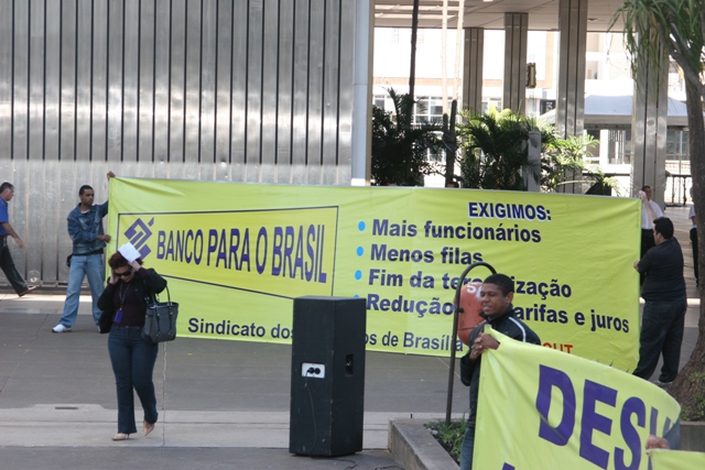 Em resposta à intransigência do Banco do Brasil em atender às reivindicações do funcionalismo, os bancários do BB paralisaram por duas horas diversas agências, unidades e edifícios no Distrito Federal, incluindo manifestação no Setor Bancário Sul e na Tecnologia (edifício sede IV). A decisão dos bancários de cruzar os braços nesta quarta-feira 25 foi tomada em assembléia na noite de ontem, no Setor Bancário Sul, seguindo orientação da Comissão de Empresa dos Funcionários, e faz parte da campanha Acorda Diretoria – Banco para o Brasil.