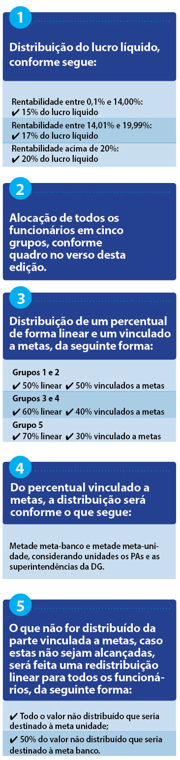 A alocação dos valores só se dará após a publicação do balanço do banco, o que deve ocorrer em março de 2016. As demais condições (como empregados que têm direito à PLR e que estão de licença) seguem o acordado para o primeiro semestre de 2015.