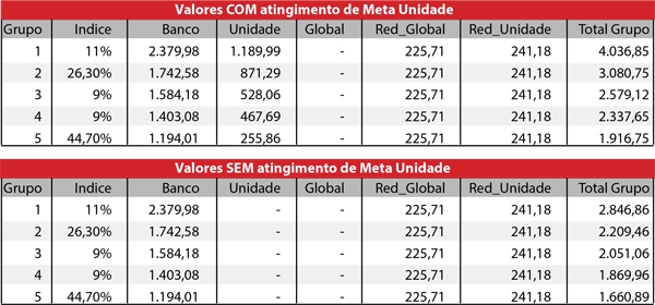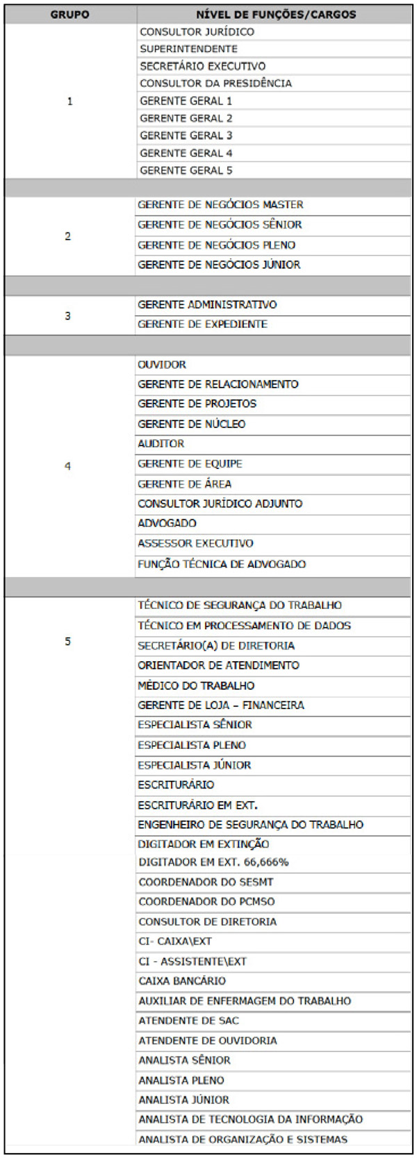 Confira quadro com os valores a serem pagos por grupos e os cargos que compõem cada grupo: