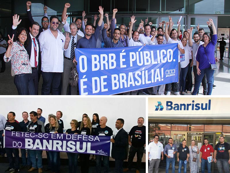 A luta em defesa dos bancos públicos tem ganhado cada vez mais força pelo país. Como se não bastasse a ofensiva privatista do governo ilegítimo de Michel Temer, que ameaça a manutenção dos bancos públicos nacionais, como a Caixa e o Banco do Brasil, os governos estaduais também tentam atacar os bancos públicos locais, como é o caso do BRB, no DF, e do Banrisul, no Rio Grande do Sul.