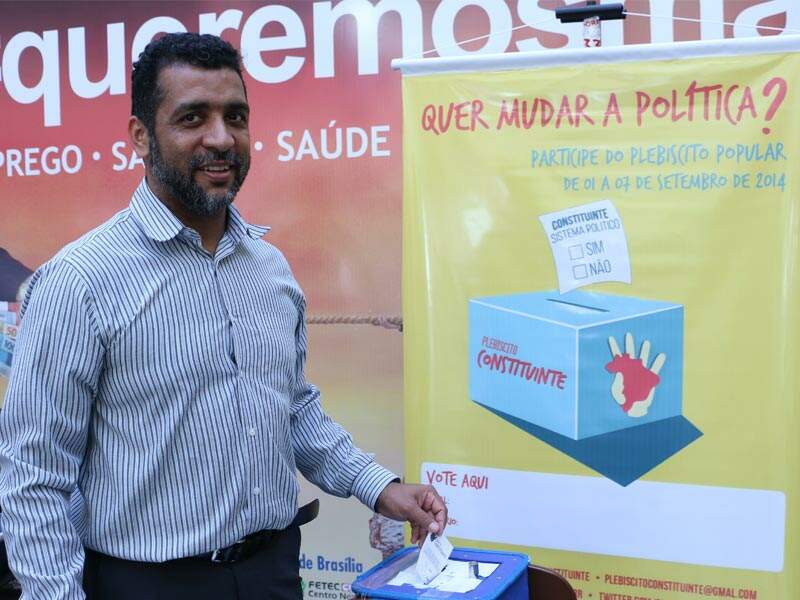 O Sindicato dos Bancários de Brasília, aliado a mais de 450 entidades de todo o país, participou do Plebiscito Popular por uma Constituinte Exclusiva e Soberana sobre o Sistema Político brasileiro. Centenas de bancários do Distrito Federal demonstraram insatisfação ao atual modelo político, votando a favor de reformas urgentes. A votação, que ocorreu entre os dias 1º e 7 de setembro, foi realizada em 1.700 comitês em todo o Brasil, com cerca de 40 mil urnas fixas e volantes.