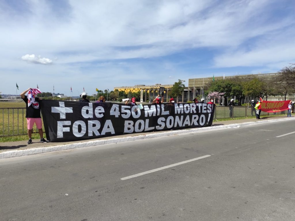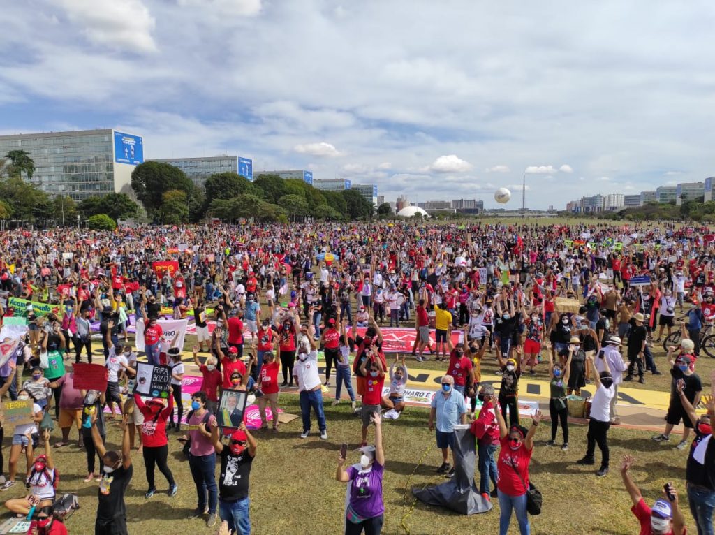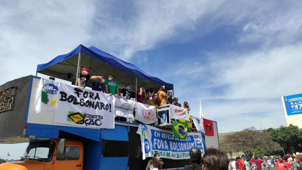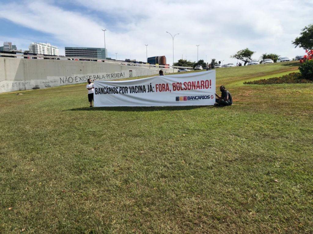 No último sábado (29), o Brasil e o mundo viram as ruas do país serem tomadas por pessoas que não aguentam mais o descaso do governo Bolsonaro. Em carreatas e passeatas, brasileiros e brasileiras bradaram palavras de ordem pedindo o impeachment do presidente que há mais de um ano transparece seu completo desprezo pela vida e pela ciência. A categoria bancária da capital federal se juntou ao movimento e fez ecoar pela Esplanada dos Ministérios o grito de ‘Fora, Bolsonaro’.
